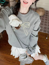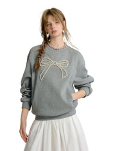 Gray & Navy Blue Butterfly Knot Beaded Pullover Sweatshirt - CHINASQUAD