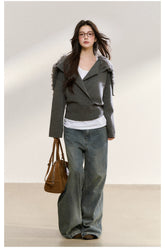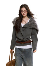 A contemporary wrap-style knit sweater that merges classic tailoring with a cinched waist belt for a refined silhouette. Designed to break away from the loose habits of traditional knitwear, it achieves a balanced sense of softness and structure through adjustable waist detailing. The oversized shawl-style faux fur collar enhances the retro-chic atmosphere, creating a striking contrast with the vertical texture of the knit fabric. The collar can be pulled up to transform into a hood, adding both functionality and design flair. Crafted from soft, skin-friendly knit material for warmth and comfort, this piece is ideal for autumn and winter styling.
