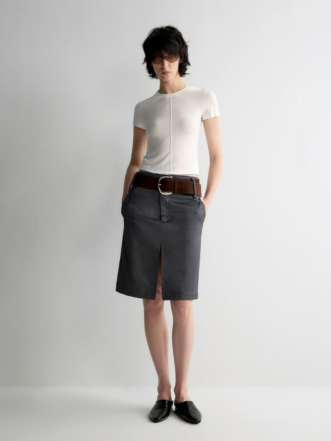Grey Wool Double-layer Suit Midi Skirt - CHINASQUAD