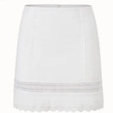 The hemline is adorned with intricate lace embroidery, creating a beautifully tiered effect that moves gracefully with every step. The high-waisted skirt flatters the figure by shaping the waistline and elongating the silhouette, while lace-trim details at the hem enhance the delicate finish.