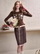 This elegant two-piece set delivers a refined, ladylike aesthetic with a playful Fair Isle twist. The fitted knit top features a delicate “Green Apple” Fair Isle pattern inspired by classic motifs, offering warmth with a soft, cozy texture. Paired with a polka dot skirt, the look balances structure and femininity, creating a polished yet charming silhouette. Designed for effortless coordination, this set is ideal for autumn and winter styling, perfect for daily wear, café dates, or elevated casual occasions with a gentle, sophisticated mood.