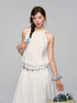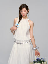 This dress is made of high - quality fabric that is soft, smooth, and skin - friendly, with a certain drape. The long - length style exudes elegance and grandeur. The long design effectively modifies the figure, with the natural draping lines from the chest down elongating the body proportion and making the wearer appear taller and slimmer. The sleeveless halter style features a gathered halter part that adds a sense of three - dimensionality and layering. Delicately spliced lace trim adds a romantic and charming touch. The delicate texture and intricate patterns of the lace contrast sharply with the overall minimalist design style.