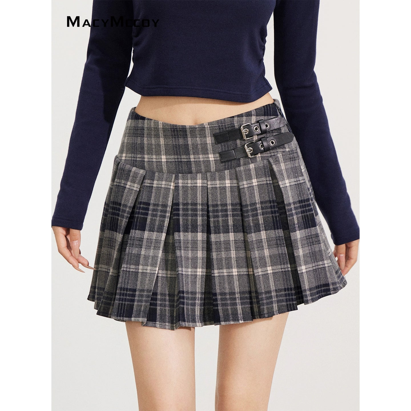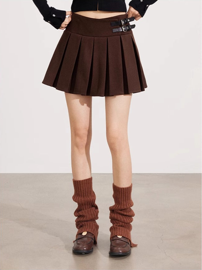 Autumn-winter wool-blend pleated skirt with a flattering A-line silhouette.