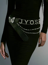 A versatile hot-girl accessory designed to elevate any Y2K or contemporary look. This style features a sparkling butterfly rhinestone buckle paired with five metal chain strips, all set against a croc-embossed PU leather body. Available in white and black, both colors offer effortless styling freedom—from streetwear to party outfits—making it an essential waist or hip chain accessory.