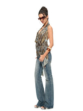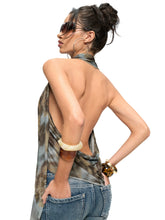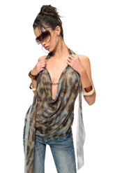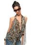 Leopard Drape-Front Backless Mesh Camisole
