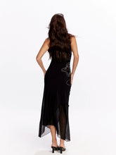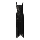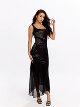 Noir Dragon Crystal Mesh Maxi Dress