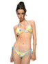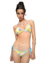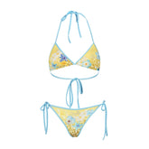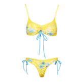 A vibrant two-style bikini set featuring bold yellow-blue contrast prints mixed with brown leopard accents. The detachable-pad design offers customizable comfort, while the tie-up straps at the shoulders and bust allow fully adjustable support and shaping. Choose between two silhouettes: a classic triangle cup for a lighter, sexier look, or a drawstring version that provides more coverage and anti-slip security. Floral and egg-flower print motifs blend with contrasting colors to create a lively, beach-ready hottie aesthetic.