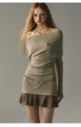 Khaki & Black Off-shoulder Knitted Mini Dress