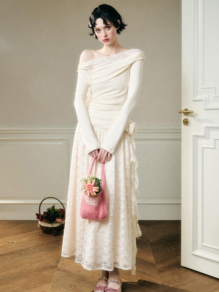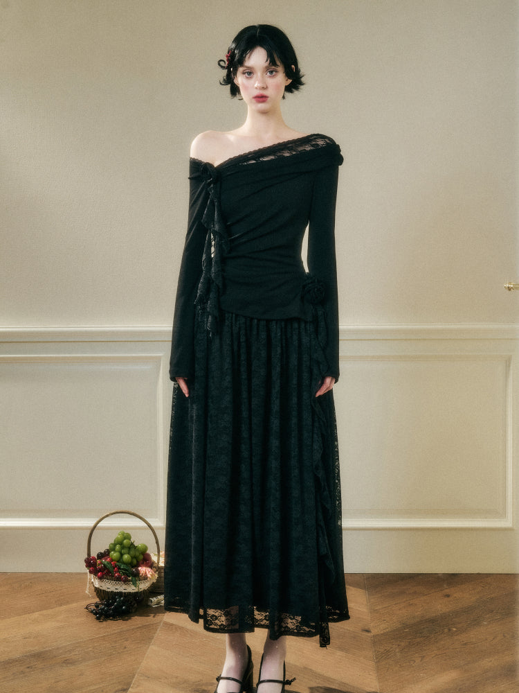 Lace Floral Asymmetrical Off-Shoulder Top & Skirt Set