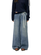 Lace Printed Wide-Leg Jeans - CHINASQUAD