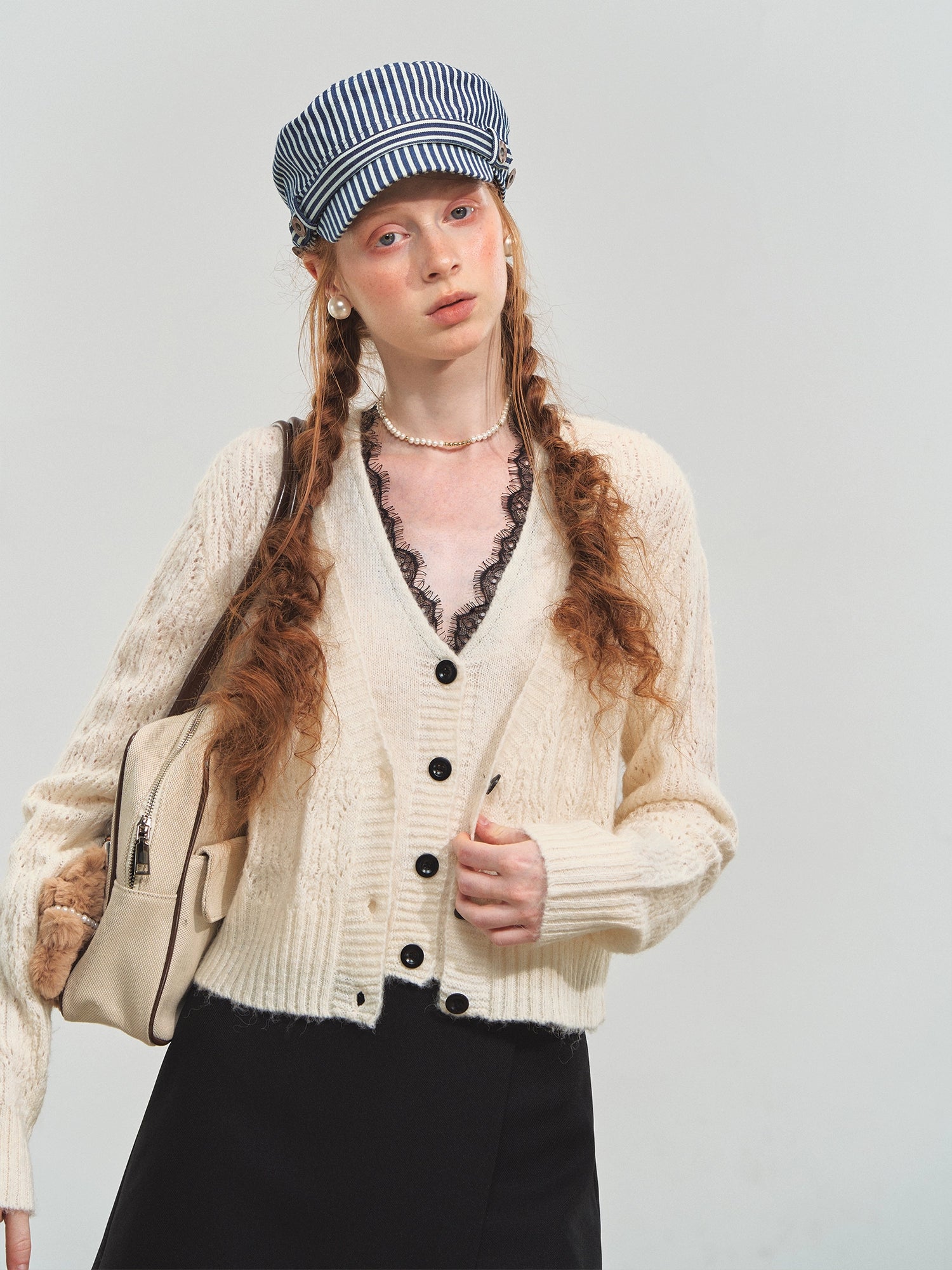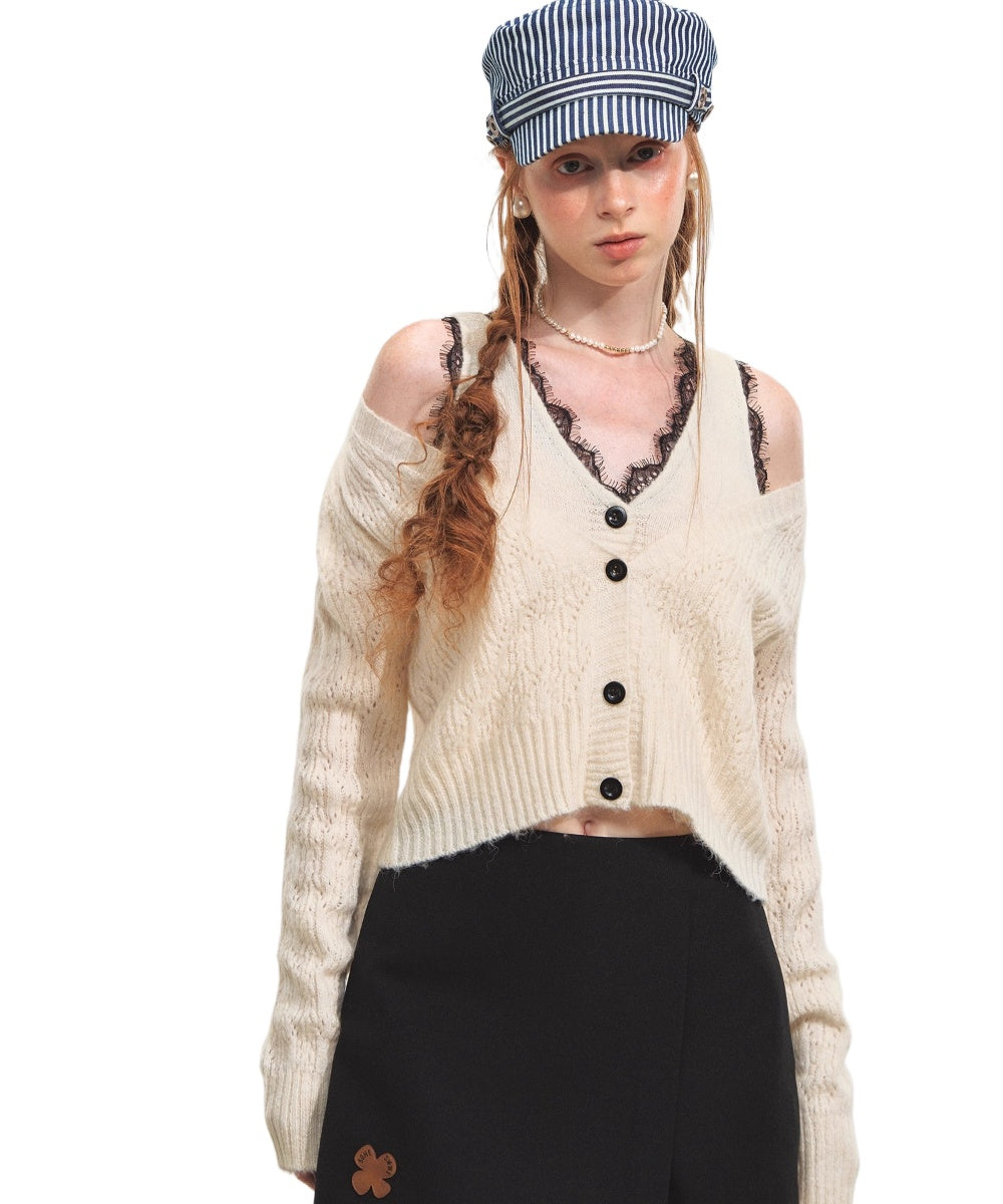 Lace V-Neck Layered Cardigan - CHINASQUAD