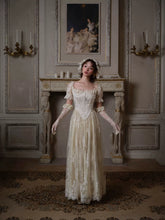 This French vintage–inspired couture dress is a collectible ceremonial piece, crafted with intricate lacework and a sculpted corset structure. Designed with classic fishbone construction, it defines the waist while creating an elegant, regal silhouette reminiscent of European palace gowns. The romantic detailing and refined craftsmanship make it suitable as a light wedding dress, engagement gown, or formal ceremonial wear. Soft yet structured, this piece embodies timeless aristocratic beauty with refined French elegance.
