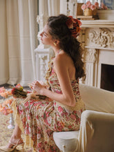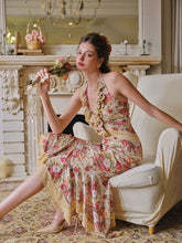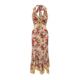 This French vintage–inspired holiday dress features a romantic halter neckline with a softly sculpted fishbone silhouette that highlights the waist and elongates the figure. Crafted in stretch printed mesh, the design flows into a graceful mermaid hem, creating elegant movement with every step. The airy, feminine look blends retro charm with modern elasticity, making it ideal for vacations, seaside getaways, evening events, and statement summer styling. A refined yet expressive piece with timeless French allure.