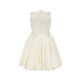 This French-inspired sleeveless dress is designed with an elegant corset-style bodice, creating a refined princess silhouette ideal for summer banquets, vacations, and special occasions. The clean white tone enhances its romantic and graceful appeal, while the structured fishbone detailing shapes the waist for a flattering fit. Lightweight and feminine, the dress balances classic French elegance with a modern, sweet aesthetic.