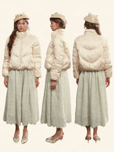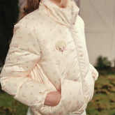 This French-inspired cropped down jacket features a youthful, age-reducing design with a distinctive fashion-forward silhouette. The short “bread jacket” cut creates a playful yet refined look, offering excellent warmth while maintaining lightness and versatility. Designed for winter wear, it supports a two-way styling option, allowing flexible looks for both casual daily outfits and styled winter ensembles. The overall aesthetic blends romantic French charm with modern practicality.