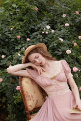 This French vintage–inspired lace dress presents a romantic and youthful silhouette designed for elegant summer wear. Crafted with a delicate lace texture, the dress features a refined fitted waist that enhances the figure while maintaining softness and fluidity. The standout design includes detachable sun-protection sleeves, allowing for two styling options—wear it sleeveless for a light, airy look or with sleeves for added coverage and vintage charm. Graceful and versatile, this dress is ideal for summer outings, garden events, or romantic daywear with a poetic, feminine touch.