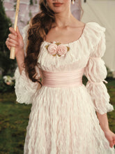 This French classical fairy–inspired long dress embodies regal elegance with a soft romantic touch. Crafted in rose-cream chiffon, it features a refined princess silhouette with gentle structure that flatters the waist while maintaining an airy, flowing drape. The long sleeves add a graceful, vintage feel, making the dress ideal for formal occasions, ceremonies, banquets, and editorial styling. Delicate and ethereal, this piece evokes a timeless queenly charm with classic French sophistication.