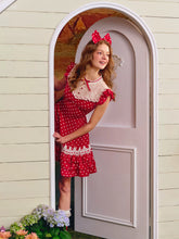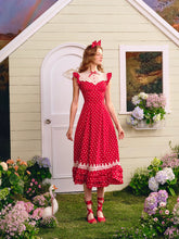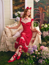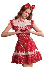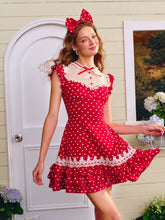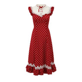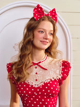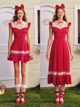 Inspired by a French sweet collegiate aesthetic, this red dress features playful polka dots paired with delicate lace detailing, creating a youthful yet refined fairytale mood. The structured bodice gently shapes the waist while maintaining comfort, and the clean shoulder line adds a polished, classic touch. Available in both short and long lengths, the design adapts easily to different styling needs—perfect for summer outings, campus-inspired looks, or romantic everyday wear with a charming, vintage flair.