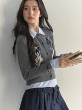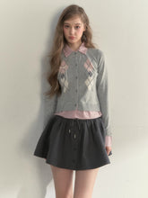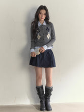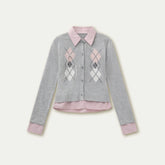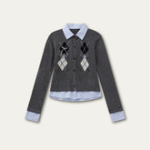 Where classic shirting meets vintage knitwear — this faux two-piece sweater blends collegiate charm with refined craftsmanship. Designed to create the illusion of layering, it pairs a crisp shirt collar and cuffs with a textured argyle knit body, delivering effortless sophistication and comfort. The collar and sleeves are precisely spliced with high-quality cotton shirting fabric, forming a natural inner-layer visual contrast that enhances structure. The argyle knit uses imported anti-pilling yarn for a soft yet resilient texture, rich in depth and dimension. The subtle raised patterns and contrasting trim add a touch of heritage flair, while the handmade bow detail brings a delicate feminine balance. Cozy, structured, and versatile, it’s ideal for achieving that polished academic look for both everyday wear and semi-formal styling.