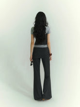 This contemporary two-piece set features a cleverly layered bandeau-effect short sleeve top paired with relaxed flared lounge pants. The top is designed with a V-neckline and contrast panel detailing, creating a structured yet flattering silhouette with a modern, sporty edge. The pants feature a high-waisted fit with subtle ruched panel accents and a fluid flared leg, elongating the figure while ensuring comfort and ease of movement. Soft, stretch-infused fabrics provide a body-contouring yet breathable wear, perfect for both casual outings and elevated off-duty styling.
