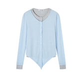 Layered Two-Tone Lyocell Wool Blend Long Sleeve T-Shirt