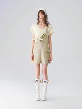 Crafted with a modern workwear-inspired silhouette, these suspender shorts combine effortless structure with casual comfort. Designed with adjustable shoulder straps and a relaxed fit through the hips, the piece delivers both functionality and style. The clean tailoring and slightly structured fabric create a refined yet laid-back aesthetic, perfect for everyday wear or styled layering. Available in versatile neutral tones, it transitions seamlessly from casual outings to styled urban looks.