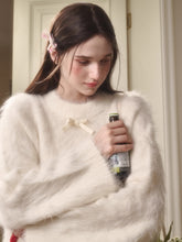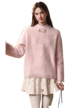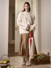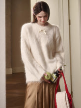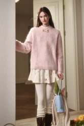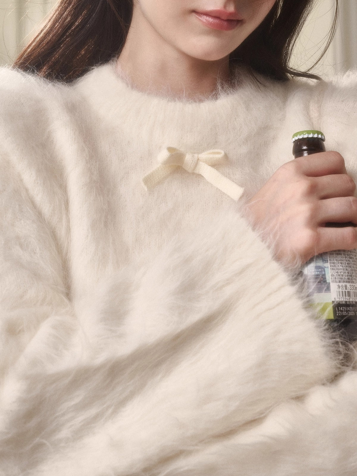 Soft as a cloud and exquisitely warm, the “Little Lamb” sweater is crafted from a luxurious blend of alpaca and cashmere for an exceptionally gentle touch. Its fluffy long-pile texture exudes a cozy elegance, while the subtle bow detail adds a hint of femininity and charm. The relaxed fit and refined drape make it an effortless winter essential — combining natural warmth, softness, and timeless style in one piece.