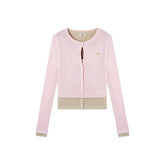This refined cardigan features a sophisticated faux two-piece design with contrast color blocking, offering a modern twist on classic knitwear. Crafted from 30% wool blend yarn, it combines the natural warmth and softness of wool with the durability and elasticity of polyester and acrylic fibers. The material delivers a plush, faux-fur-like texture with excellent shape retention and dimensional stability. Designed for a close, flattering fit, the cardigan’s high-stretch fabric ensures comfort and freedom of movement. Perfect for layering or wearing solo, it transitions seamlessly from casual outings to refined daily wear.