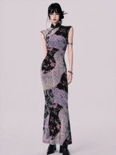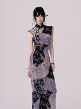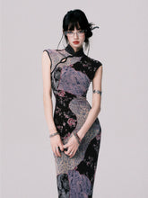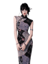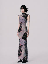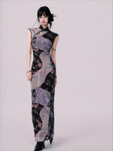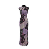 An original LULUSWINGS design featuring a refined smoky purple palette with artistic printed patchwork and contrast detailing. This modern New Chinese–style cheongsam is crafted from stretch mesh, offering a sleek, body-contouring fit that enhances the silhouette while remaining comfortable. The sleeveless cut and sculpted shoulder line add a contemporary edge, while the elongated profile delivers elegant movement and a subtly bold, fashion-forward attitude—perfect for summer occasions or statement cultural styling.