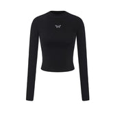 This LULUSWINGS original design base top features a refined mock-neck silhouette accented with a delicate butterfly embroidery emblem, delivering a quiet yet expressive aesthetic. Designed with a close-fitting cut, it contours the body to create a clean, elongated line, making it ideal for layering or standalone wear. The minimalist design balances softness and structure, offering a polished look that works effortlessly for daily styling, transitional seasons, and elevated layering outfits.