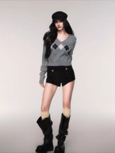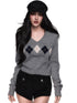 An academic-inspired knit pullover featuring a classic argyle pattern and a refined V-neckline. Designed with a slim yet comfortable fit, this long-sleeve sweater brings an effortless scholarly charm with a modern feminine edge. The cropped length subtly highlights the waist, while the soft wool-blend knit delivers warmth and texture—perfect for layering in transitional seasons or styling with high-waisted bottoms for a polished collegiate look.