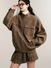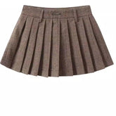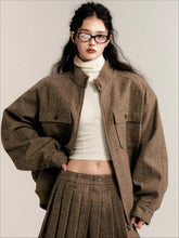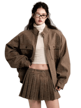 A chic American retro–inspired collegiate set with a “fashion nerd” attitude, combining a relaxed wool-blend jacket with a matching mini skirt. The jacket features an easy oversized fit with clean lines and a casual academic feel, while the skirt balances the look with a playful, youthful silhouette. Designed for effortless coordination or versatile mix-and-match styling, this set delivers a perfect blend of vintage campus charm and modern everyday wear.