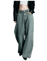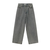 Effortlessly relaxed with a vintage-inspired washed finish, these wide-leg jeans deliver a laid-back yet stylish silhouette. Designed with a mid-to-low rise waist and loose fit through the leg, they create a natural drape that elongates the proportions while maintaining comfort. The soft washed cotton denim enhances the retro aesthetic, making these jeans ideal for casual daily wear, minimalist styling, or effortless street looks with a calm, undone attitude.