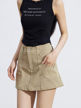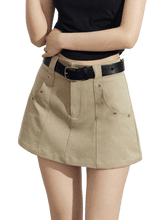 This modern A-line mini skirt features a clean utility-inspired design with a structured silhouette that enhances the waistline and elongates the legs. The high-waisted cut creates a flattering proportion, while the crisp shape adds a polished and contemporary edge. Designed for versatile styling, this piece blends functionality with minimal aesthetics, making it a staple for effortless summer outfits.