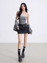 This MacyMccoy spring knit set features a thoughtfully designed contrast-color two-piece construction, combining a cropped strapless knit top with a batwing-sleeve shawl overlay. The layered look delivers a cozy “soft fufu” texture while adding visual depth and styling flexibility. The inner bandeau-style top offers a clean, body-skimming fit, while the outer shawl drapes effortlessly over the shoulders for a relaxed yet fashion-forward silhouette. Wear them together for a complete statement look or style separately for versatile everyday layering—perfect for spring innerwear with a refined, atmospheric edge.