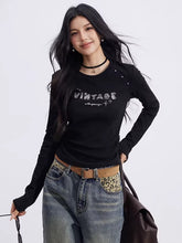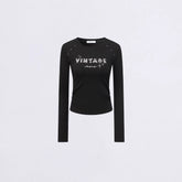 Designed for spring styling, this fitted long-sleeve top features a ruched, waist-cinching construction that accentuates the figure while maintaining comfort. The subtle letter print adds a modern, playful edge, balancing a clean silhouette with street-inspired attitude. Ideal as a base layer or worn on its own, this piece delivers a sleek, body-enhancing fit perfect for everyday wear.