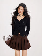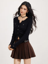 A soft, high-stretch knit top designed for warmth and comfort in autumn and winter. Featuring delicate floral metal buttons and a subtle pocket detail, it captures a minimalist feminine charm. The fine elastic ribbed knit gently contours the body for a flattering fit, offering a perfect balance of coziness and sophistication — ideal for layering or standalone wear.