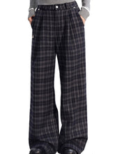A cozy yet effortlessly chic pair of plaid wide-leg trousers designed with a soft fleece lining for added warmth during the winter season. These pants combine classic check patterns with a relaxed silhouette, offering both comfort and sophistication. The elasticated waistband ensures a flexible fit, while the fluid drape enhances movement, making them perfect for casual outings or cozy indoor wear. Pair them with knitwear or outerwear for an easy, elevated look.