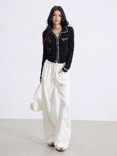 These MacyMccoy wide-leg pants are designed with a distinctive curved (barrel-inspired) cut and fluid drape, creating a modern, sculpted silhouette that flatters the figure. The relaxed wide-leg shape balances structure and movement, visually elongating the legs while offering all-day comfort. An elasticated waistband provides flexible fit and ease of wear, making these trousers a reliable everyday essential. Versatile and refined, they pair effortlessly with knits, shirts, or casual tops for spring-ready, understated styling.