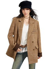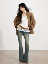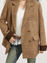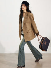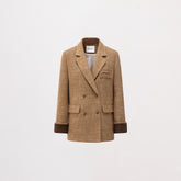 A sophisticated coffee-toned wool blazer that blends classic tailoring with contemporary minimalism. Crafted from premium textured fabric with a structured cut, it flatters the silhouette while maintaining comfort and warmth. The refined contrast edging and neat lapel design add understated elegance, while the subtle turned-up cuffs lend a relaxed, effortless finish. Perfect for elevating your fall and winter wardrobe with timeless charm and poise.