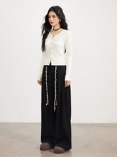 A chic Korean-inspired wide-leg pant designed for both warmth and effortless style. Crafted from a structured wool-blend fabric, these pants feature a self-tie knitted belt that adds texture and definition to the waist. The clean tailoring and soft drape create a refined silhouette that pairs perfectly with sweaters, blazers, or coats. Wind-resistant, cozy, and versatile โ€” ideal for creating a polished yet relaxed autumn-winter look.