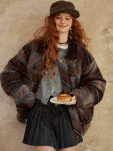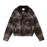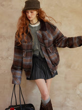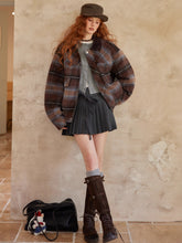 A refined wool-blend overshirt jacket inspired by the Maillard aesthetic, featuring a retro plaid pattern and structured collared design. The relaxed silhouette combines warmth with sophistication, offering effortless layering for both casual and elevated looks. Crafted from a soft yet durable fabric, it delivers a cozy feel with a touch of timeless elegance—perfect for creating chic fall and winter ensembles.