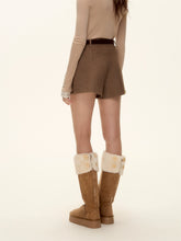 This mohair-blend A-line pleated skort combines retro charm with modern edge. Designed for a flattering high-waist silhouette, it features a built-in belt accent that adds structure and sophistication. The skirt–shorts hybrid offers the perfect balance of style and practicality, ideal for petite frames and versatile for both daily wear and chic commuting looks. Pair it with sweaters, boots, or blazers for a refined yet playful ensemble.