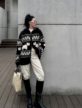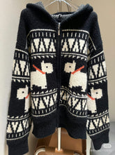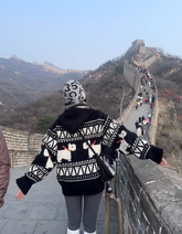 This cozy hooded cardigan features a mosaic-style terrier dog pattern, adding a playful and unique element to your wardrobe. The soft and warm fabric makes it perfect for chilly days, providing comfort with a stylish edge.