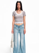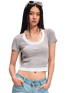 A refined fitted T-shirt inspired by classic academy aesthetics, designed with a layered illusion construction that creates the look of a two-piece top. Crafted from a soft wool-blend knit, the piece features contrast panel detailing and an elegant halter-style neckline with a wide open collar. The slim silhouette contours the body while the stretch knit ensures comfort and flexibility. The combination of sporty structure and feminine detailing makes it ideal for both casual and elevated styling.