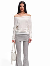 A refined long-sleeve knit top crafted from a premium wool and lyocell blend, offering a soft, breathable texture with natural drape. Designed with an elegant asymmetric off-shoulder neckline, the silhouette highlights the collarbone while creating a modern and feminine aesthetic. The subtly tailored waist enhances the body’s natural shape, while the stretch-knit structure provides comfort and flexibility for everyday wear. Minimal yet sophisticated, this piece transitions effortlessly between casual styling and polished looks.