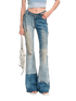A sleek pair of micro-flare denim jeans from the Equestrian Series, designed to sculpt the legs with a slim fit through the hip and thigh before subtly flaring at the hem. Crafted from washed stretch cotton denim, the fabric provides structure with flexible comfort for everyday wear. The design features contrast panel detailing and laser-burn pattern accents that add depth and a distinctive visual texture. The high-definition washed finish enhances the modern equestrian-inspired aesthetic while maintaining a streamlined silhouette.