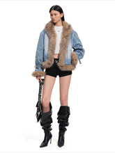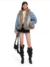 Crafted from classic twill-woven denim, a long-admired fabric in fashion for its breathable comfort and natural cotton composition. The base fabric undergoes indigo dyeing, where color clings only to the outer fiber layer, gradually softening through wash treatments to achieve a naturally faded, vintage effect. Combined with a high-density, eco-friendly dual-tone faux fox-fur collar, the jacket presents rich texture, balanced warmth, and a modern utilitarian aesthetic. The padded construction enhances insulation while maintaining a relaxed silhouette for versatile winter styling.