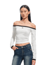 A sleek long-sleeve knit top designed with an elegant off-shoulder neckline that highlights the collarbone and shoulders. Crafted from a soft, skin-friendly stretch knit, the piece features contrast color detailing that adds a modern accent to the minimalist silhouette. The fitted structure contours the body to create a slimming, sculpted shape, while the elastic fabric ensures comfort and flexibility. Refined yet versatile, it pairs effortlessly with denim, tailoring, or skirts for a polished everyday look.