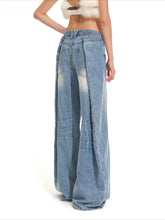 These long-length denim pants feature a relaxed, wide-leg silhouette inspired by vintage ranch workwear. Crafted with a washed and distressed finish, the design highlights whiskering details and textured crease effects for a naturally worn-in look. The low-rise waist and reversed pocket construction add a bold, deconstructed edge, while the roomy cut delivers effortless comfort and laid-back styling. A statement denim piece that balances utility aesthetics with modern streetwear attitude.